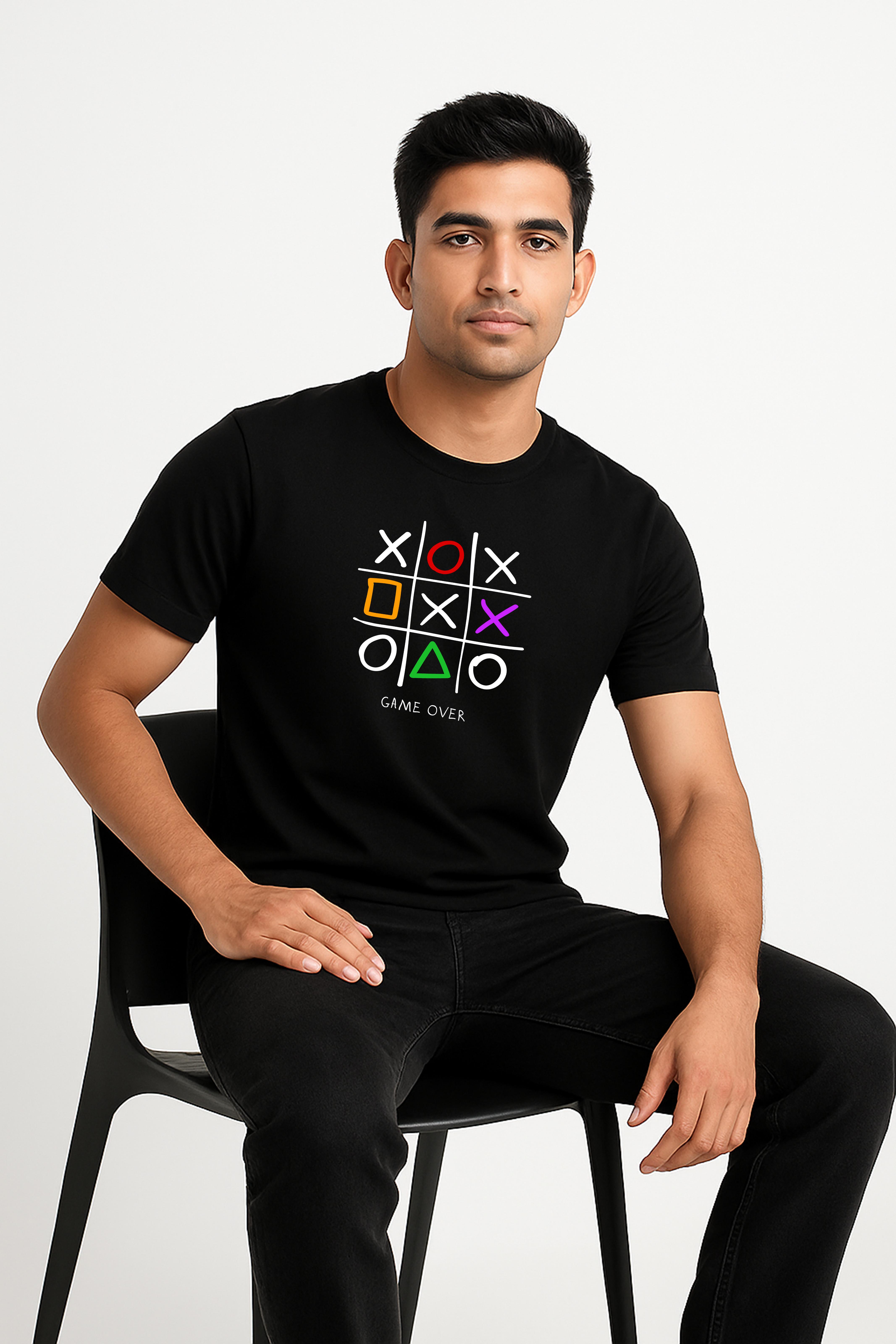 Tags: T-shirt, Game Over, Tic Tac Toe, Graphic Print, Cotton, Black, Casual Wear, Unisex, Soft Fabric, Comfortable, Round Neck, Vibrant Colors, Gift Idea, Trendy, Smart Look, chiqraah